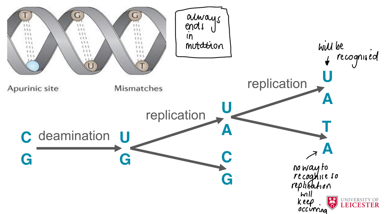 - Sodium nitrate is a food additive in smoked meats - When gets into stomach it reacts with HCl to form nitrous acid - Nitrous acid is a mutagen which causes deanimation of C --\> U