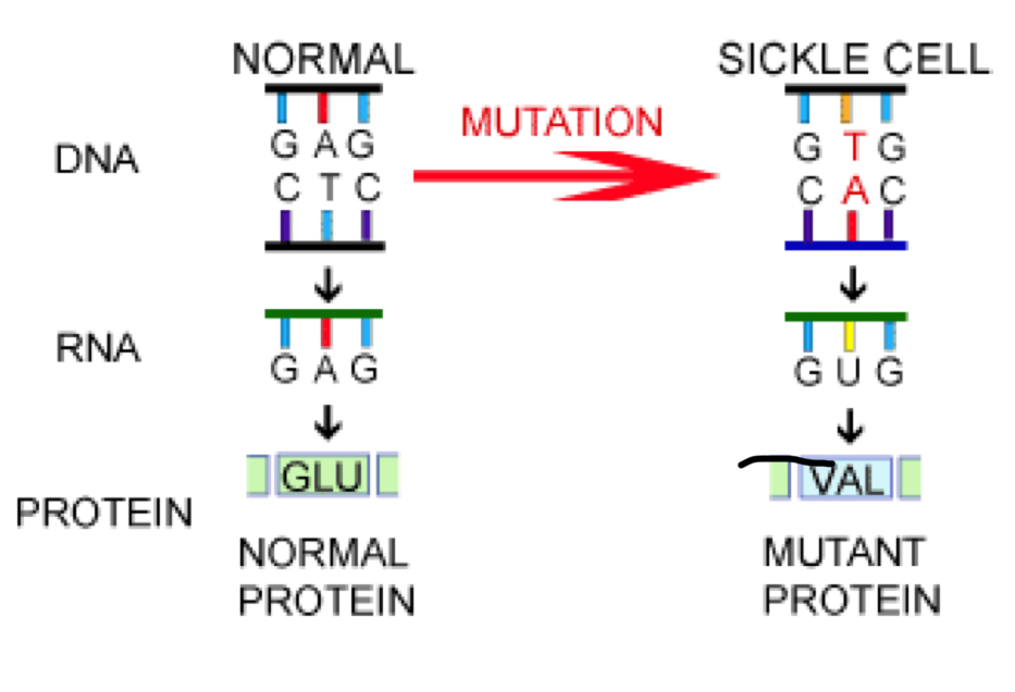 • Base substitution in codon 7 of HBB, changing 6th AA