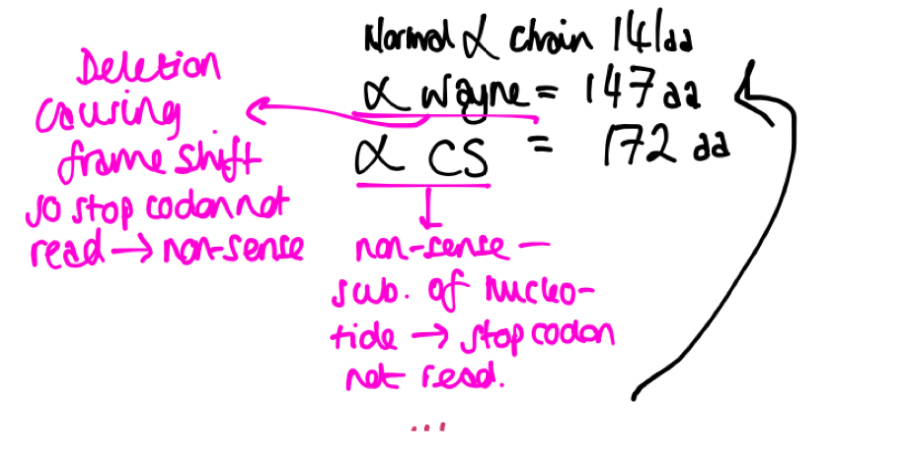 • Normal alpha Hb: 141 aa