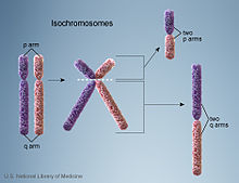 - Isochromosomes (two p together, abnormal centromere split)