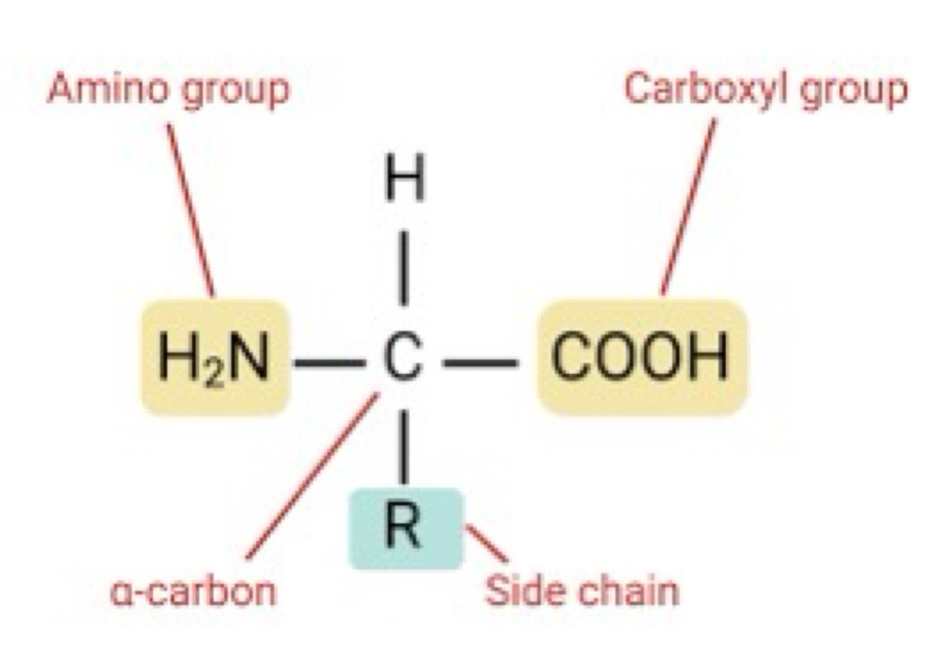 Complex 3D structure usually coiled or folded made with ionic bonds, hydrogen bonds and disulfide bridges.