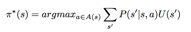 This is the optimal policy. Under certain assumptions, it is independent of starting state. For an MDP with known transition model, reward function and assuming the optimal policy, we can calculate the utility U(s) of each state s.