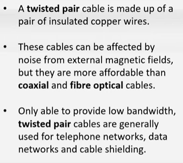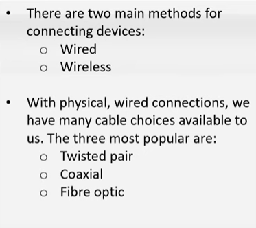 Typically connected using: UTP cable, fibre optic, Wi-Fi