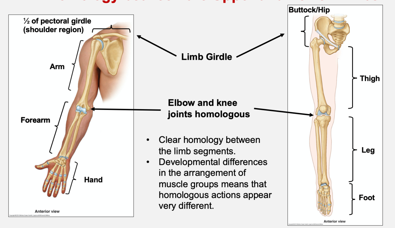 identify the homologous regions between the upper and lower limb