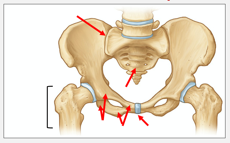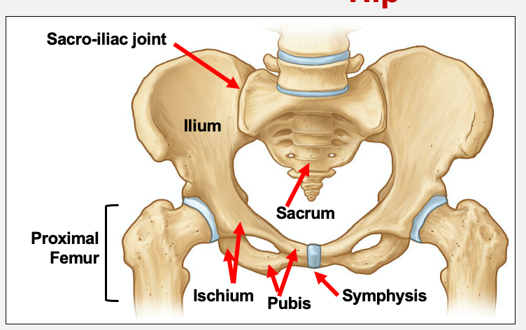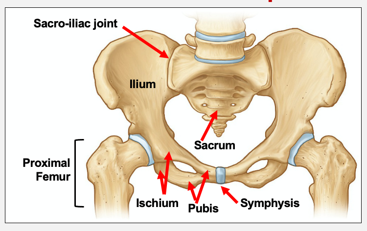 pair of hip bones fuse with sacrum at sacroiliac joint and with each other at pubic symphysis