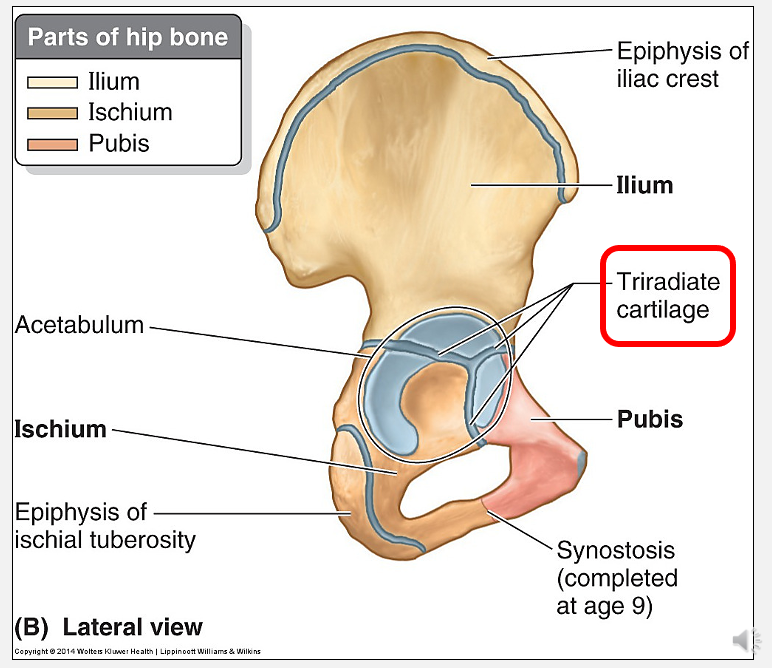 triradiate cartilage separates the 3 bones