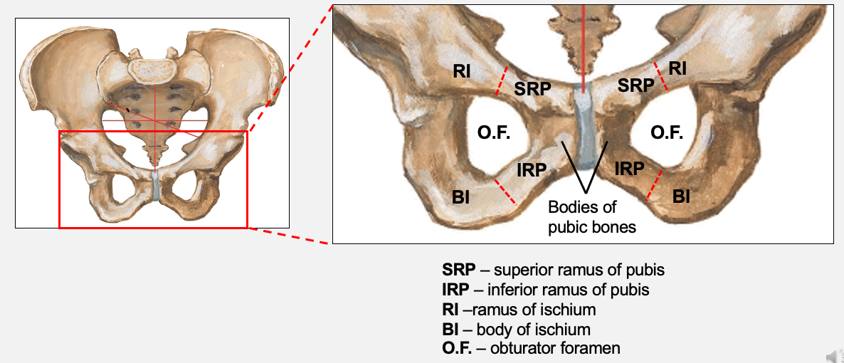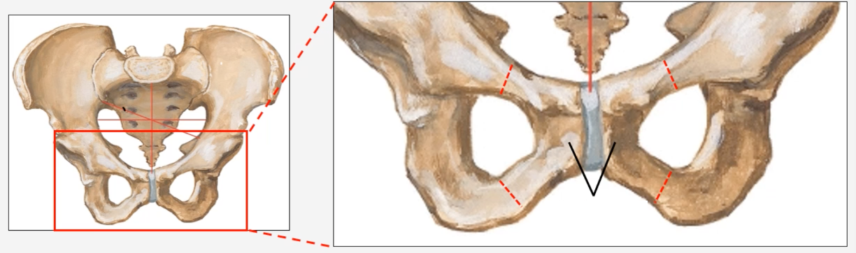 fusion of the ischium in inferiorly and superiorly with the pubis: