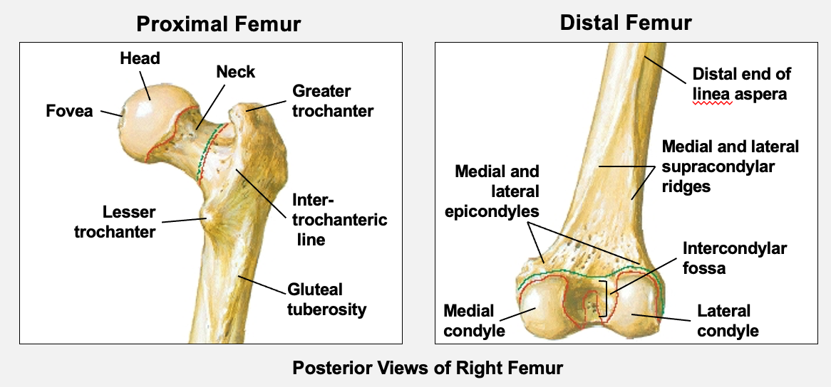 posterior surface of shaft has linea aspera → ridge which runs down the majority of the length (important for muscle attachment)