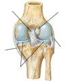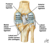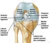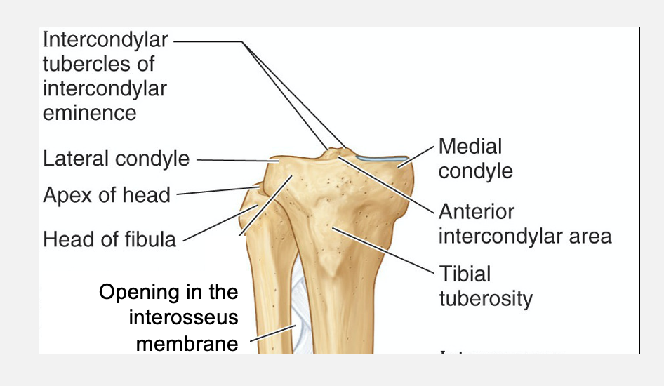 proximally - tibial plateau articulates with distal femur to form knee joint