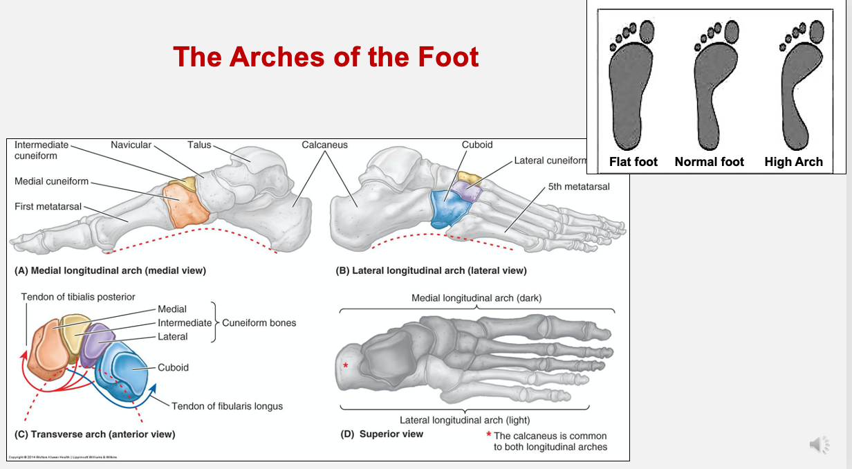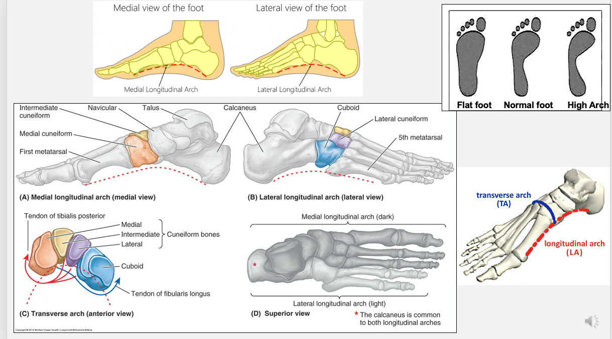 medial longitudinal arch, lateral longitudinal arch, transverse arch