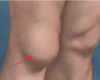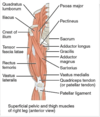 tibial tuberosity → (can be palpated just below knee) muscle attachment point