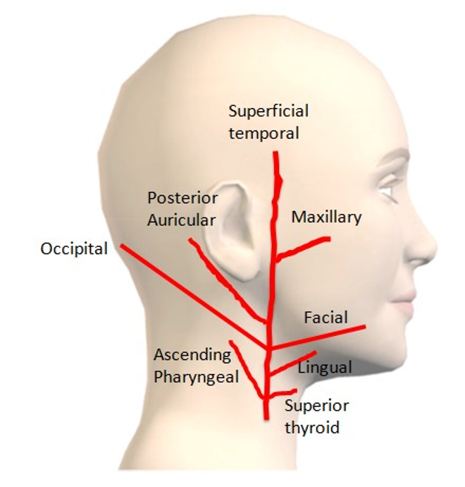 What are the branches of the external carotid artery?