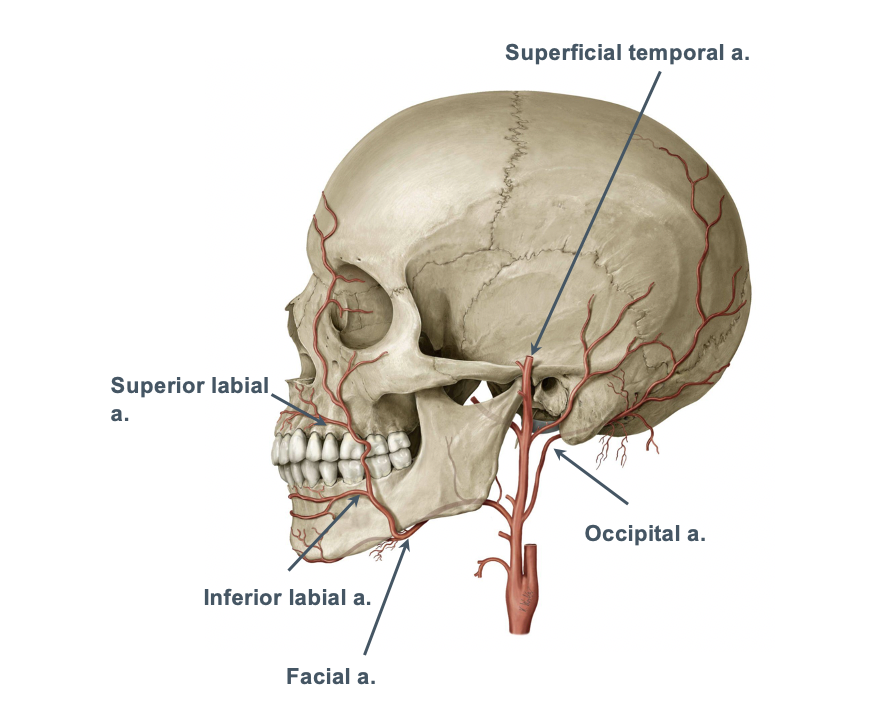 What artery supplies to the face and scalp