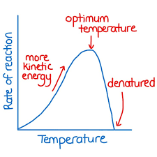 when temperature goes over the optimum the enzymes denatures