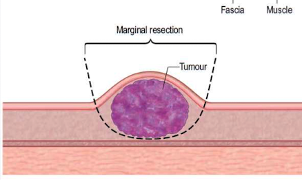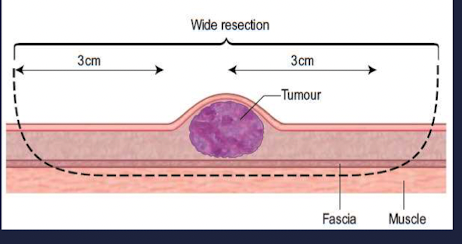 * re-excision possible without great morbidity- BEST CHANCE OF CURE IS 1st SURGERY
