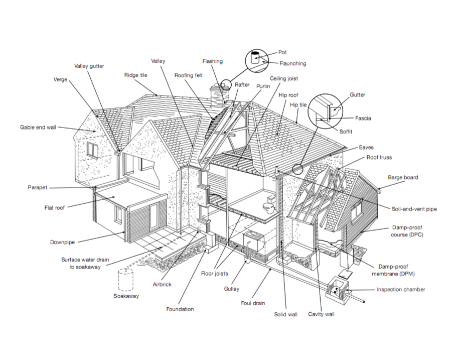Can you some parts of a typical residential dwelling (the construction) ?