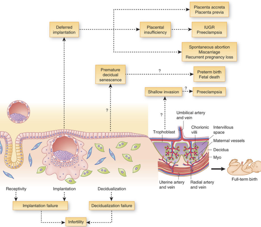 If implantation in correct place but decidual reaction is suboptimal can lead to complications like miscarriage, infertility or placental insufficiency leading to pre-eclampsia