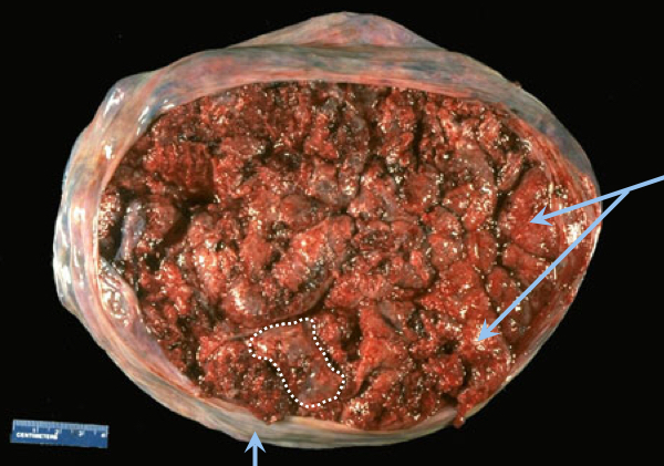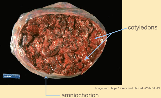 - Projections around all surfaces of this membrane concentrated into a small disc like space that becomes the placenta