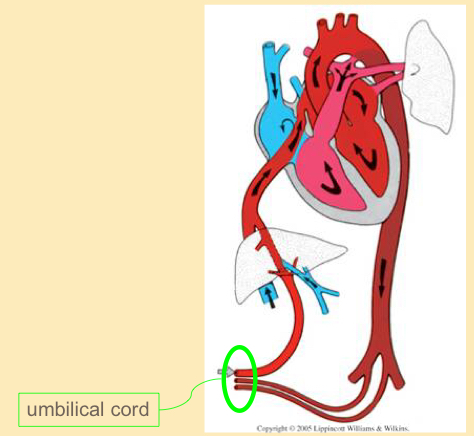 What are the main blood vessels exchanging the placenta and how are they arranged?