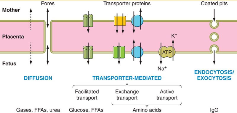 How does transport across the placenta occur?