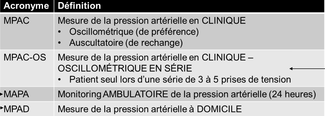 Nommer les méthodes de prise de TA hors cabinet à privilégier