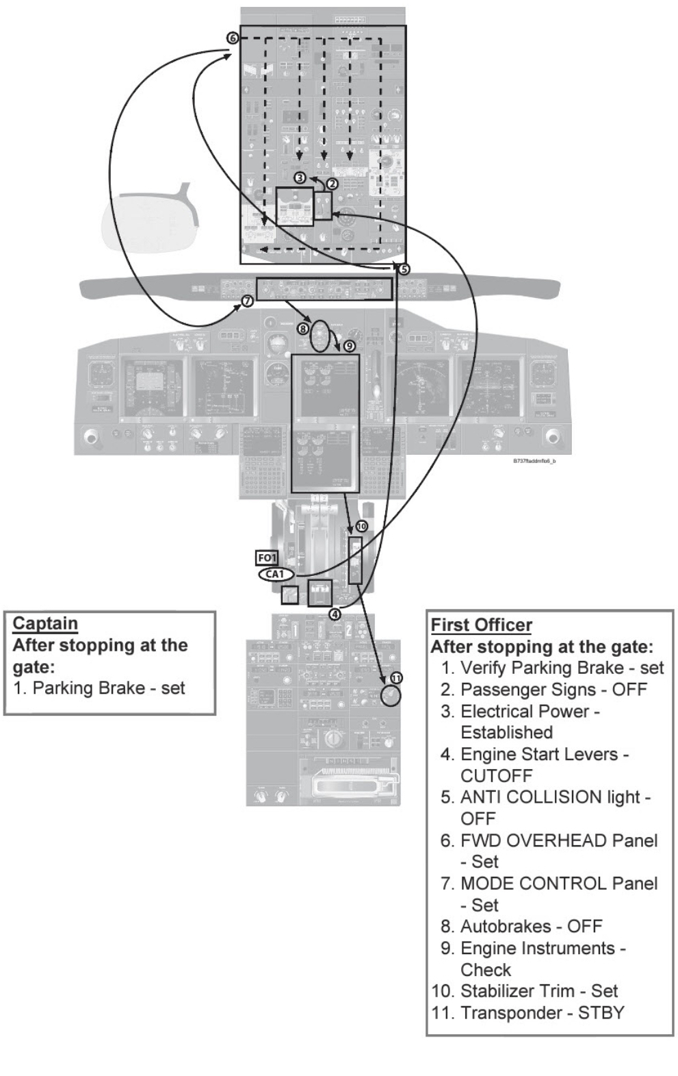 Engines may be shutdown after a 1-minute cool down period for gate arrival.