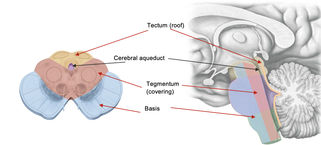 Tegmentum is ventral to cerebral aqueduct (floor)