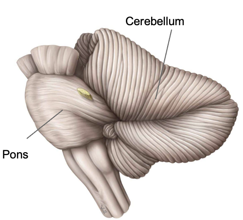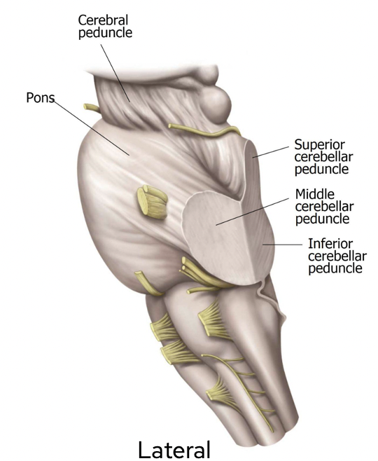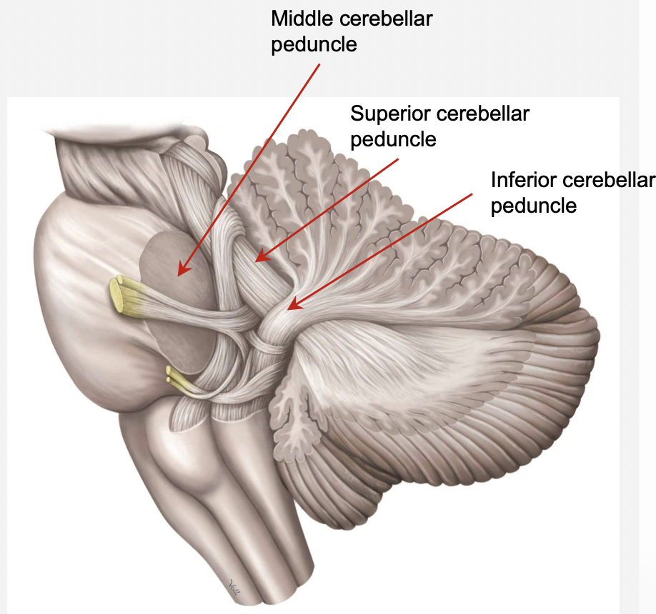 Connects the cerebellum with the medulla oblongata and spinal cord