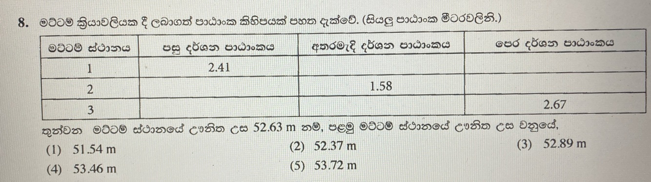 පංචාස්රාකාර කියඩොලයිට්ටු පරික්රමණයක් 1 : 1000 පරිමාණයට පිටපත් කළ විට එහි අවසාන දෝෂය 0.12 mm විය. මෙම දෝෂය ප්රස්තාරික ක්රමයෙන් සියලු මැනුම් ස්ථාන අතර බෙදා හැරිය විට තුන්වන මැනුම් ස්ථානය කොපමණ දුරකින් විතැන් වේද?