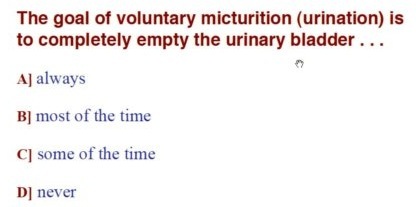 normal micturition entails coordinated actions of detrusor and sphincter musculature to enable complete emptying of the urinary bladder at appropriate times
