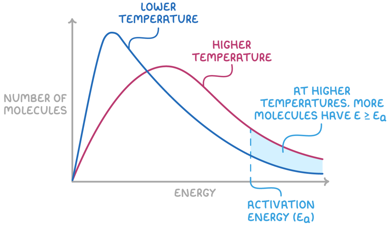 Using the Boltzmann distribution, why does increasing the temperature have a large impact on rate of reaction?