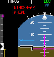 Red WINDSHEAR AHEAD icon displayed on PFD