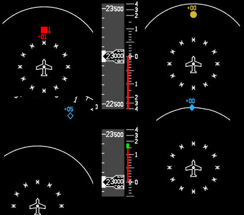 Voice warnings will command climb or descent, as required, and notify crew when clear of conflict