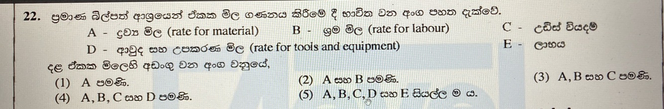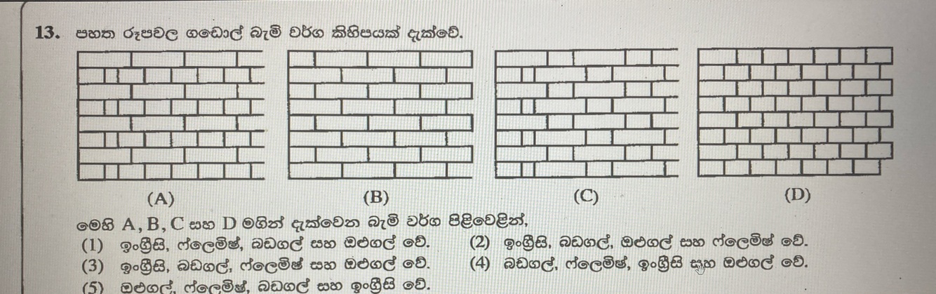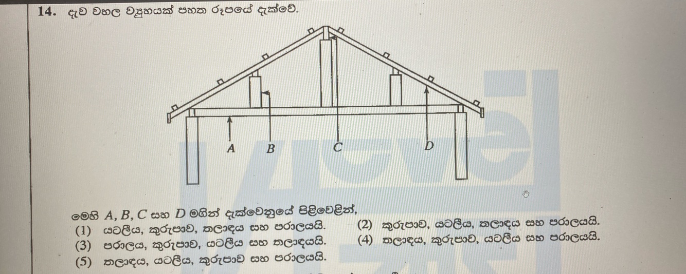 මෙහි A, B, C සහ D මගින් දැක්වෙනුයේ පිළිවෙළින්