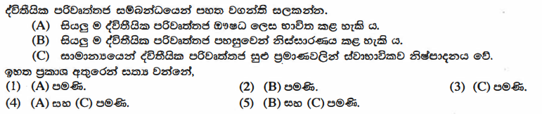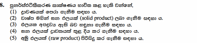 රසායනික කර්මාන්ත and ස්වභාවික නිෂ්පාදනPast Papers