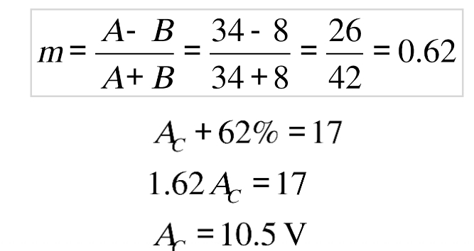 For m = 0.5, the carrier amplitude varies by 50% above and below its modulated level.