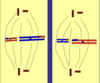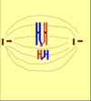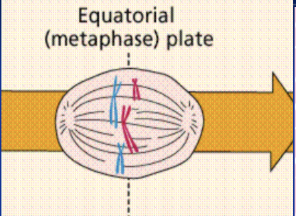 Chromosomes arrange themselves at the equator of the spindle and becomes attached to the spindle fibres at the centromere. The fibres begin to contract pulling the chromatids slightly apart.