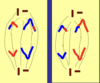 the pairs separate and one chromosome goes to each of the daughter cells. The gametes are haploid