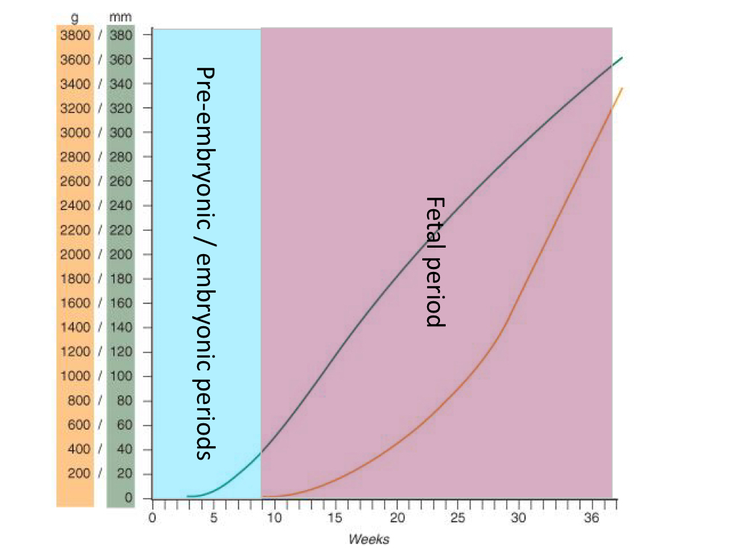 Useful: Pre-embryonic, embryonic and early fetal period as growth= relatively linear