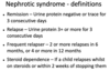 * **Urine dipstick for albumin:** if +++ on 3 consecutive days this is a relapse and needs steroids