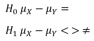 What are the hypotheses for a difference of two means test?