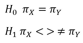 What are the hypotheses for a two sample binomial proportion test?