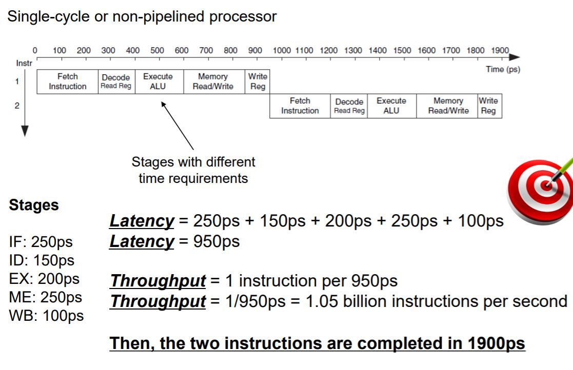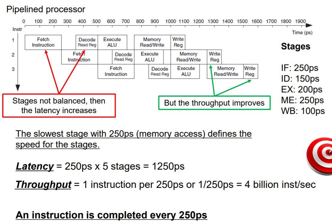 Throughput Number of instructions performed per unit of time. Pipelining IMPROVES the throughput.