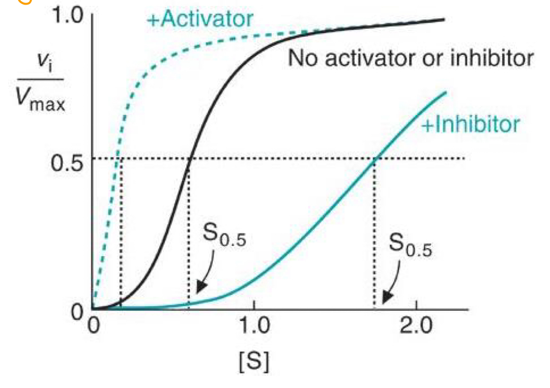 Draw a graph to show the relationship between substrate concentration and reaction rate in an allosteric enzyme?