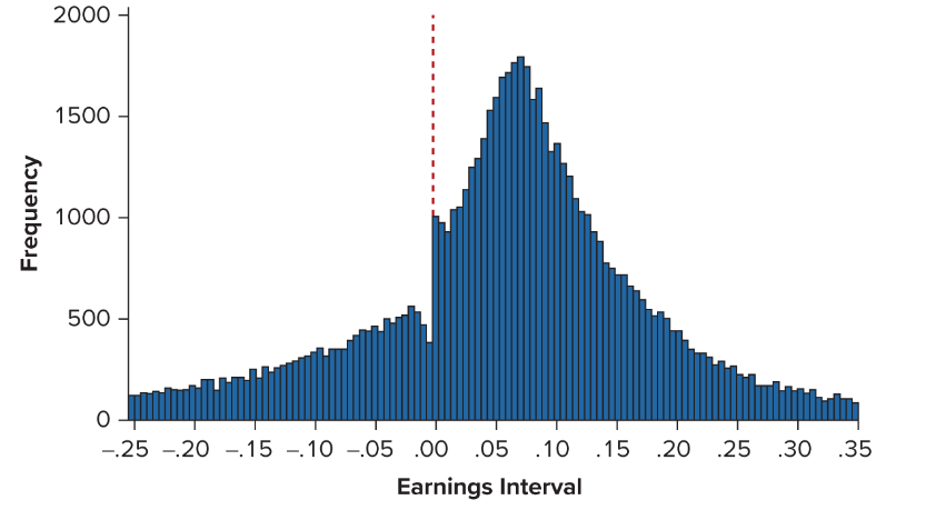 An example is plotting the return on equity (ROE) at earnings intervals across all firms trading on a U.S. public exchange, as done by accounting researchers David Burgstahler and Ilia Dichev.