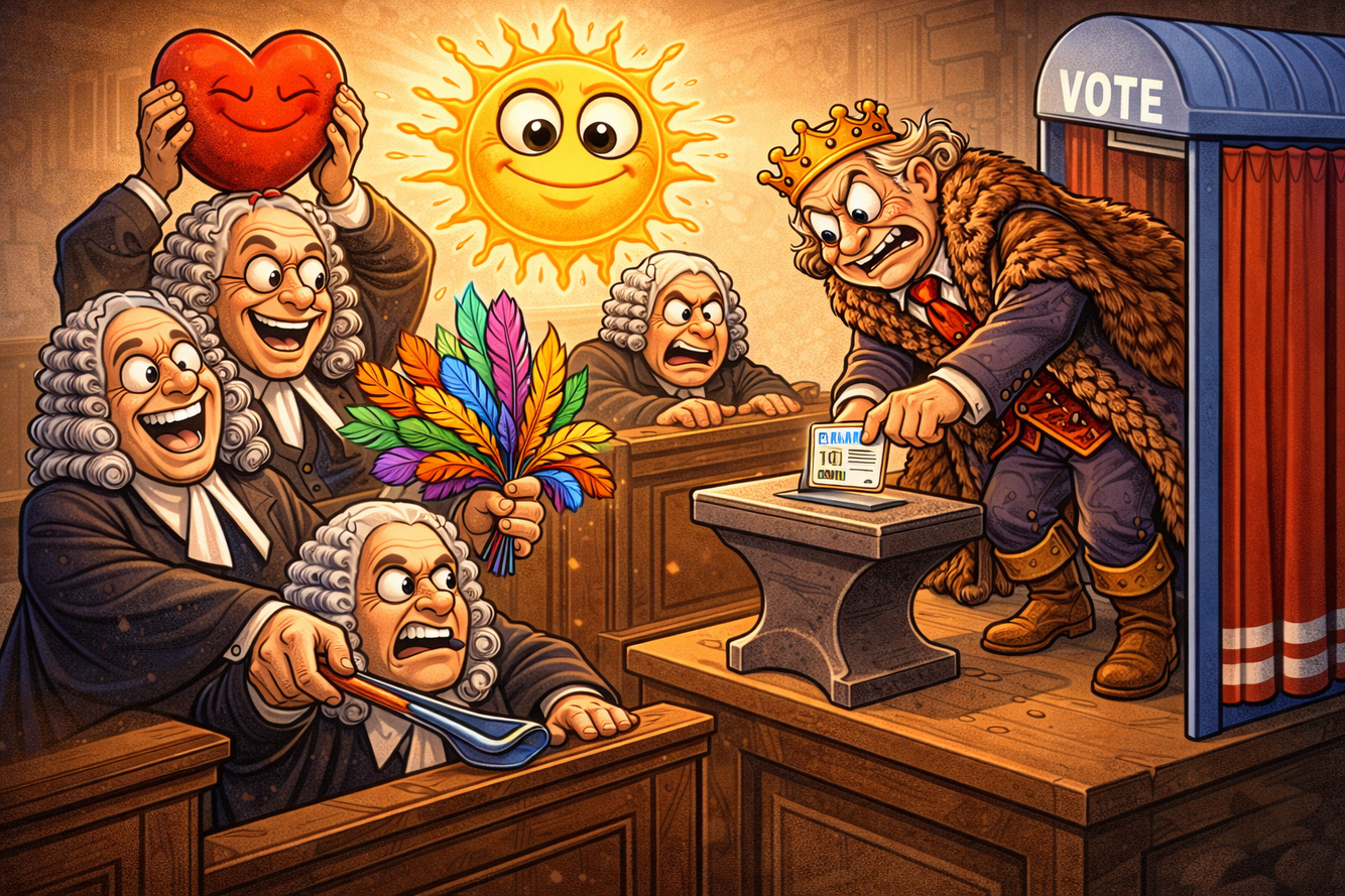 166 head judge, heart-love, feather-faithfulness, sun with eyes-sin, a ton of bricks-atoned, lord wearing fur-fear of the lord, anvil-evil, voting-avoided