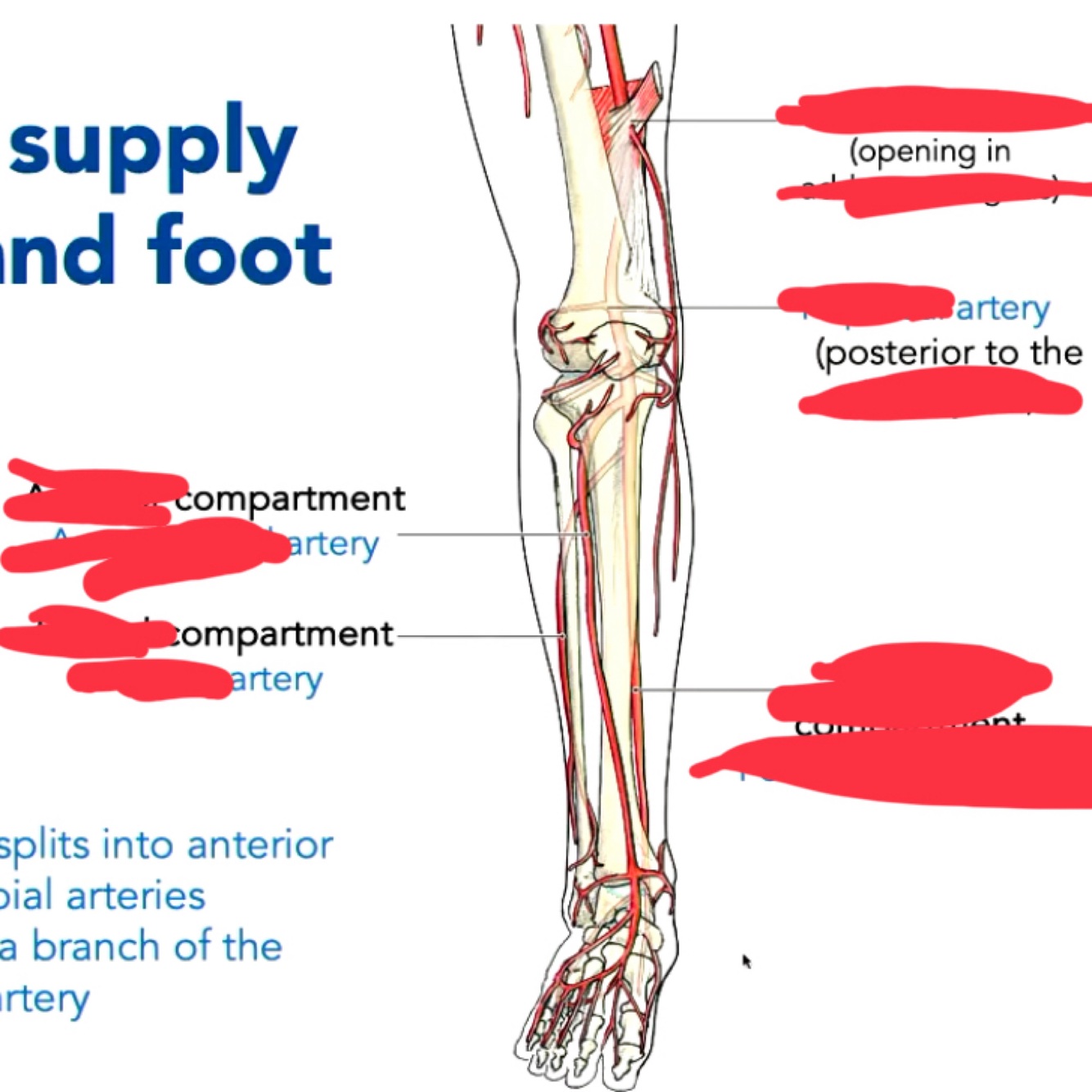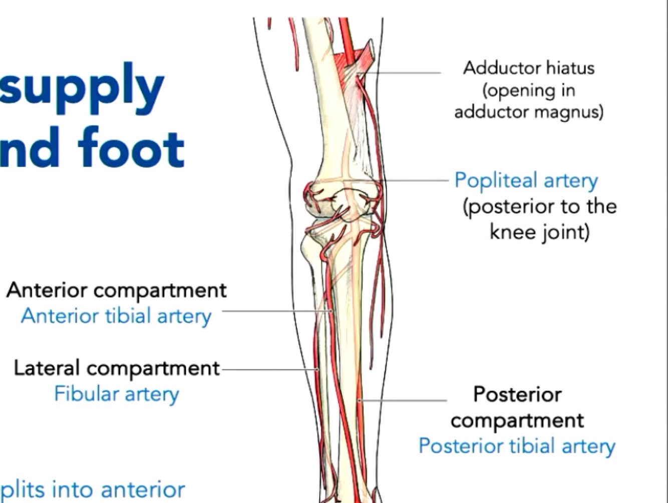 Supplies anterior and lateral compartments