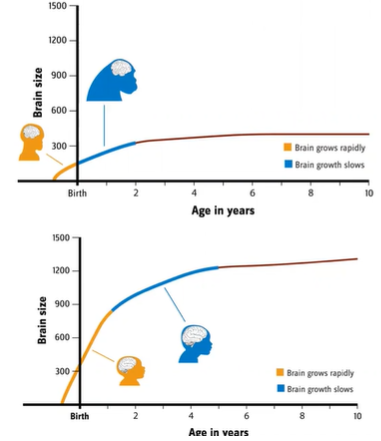 How do human and chimpanzee brain growths compare?