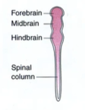 What are the different structures within the embryonic forebrain, midbrain and hindbrain?