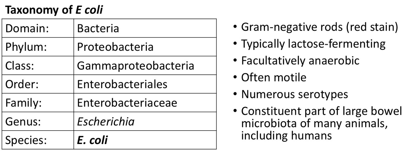 What are the features of EColi e.g shape and gram stain?